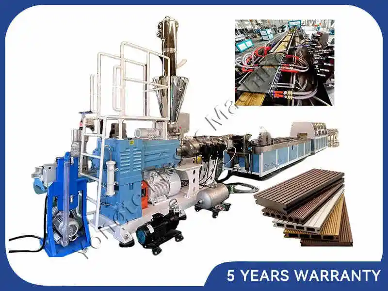 Din punct de vedere al procesului de producție, echipamentul demonstrează pe deplin utilizarea eficientă a resurselor deșeuri în legătura de preparare a materiilor prime. Mașina de reciclare din plastic poate prelucra cu exactitate 300 kg de deșeuri de plastic, cum ar fi PP și PE pe oră, transformându-l în foi de plastic necesare pentru produsele din lemn-plastic. Întregul proces trece printr -o serie de procese fine, cum ar fi zdrobirea, curățarea și uscarea, iar rata de reciclare a plasticului este la fel de mare de peste 95%. Mașina de fabricare a pulberii din lemn poate produce în mod stabil 400-600 kg de 80-120 Praf de lemn de plasă pe oră, arătând o adaptabilitate puternică la tot felul de materii prime din lemn. Intrând în etapa de producție a peleților WPC, granulatorul WPC are o capacitate de producție pe oră de 400-500 kg. Printr-un proces unic, se asigură că lemnul și plasticul sunt complet integrate, astfel încât rezistența la tracțiune a produsului final este crescută cu 20%-30%. În etapa finală de modelare a extrudării produsului WPC, co-extrudatorul profilului WPC are o capacitate de extrudare pe oră de 150-200 kg. Poate produce mai mult de 20 de profiluri de dimensiuni și forme diferite prin schimbarea flexibilă a matrițelor și este echipat cu mașini avansate de embosare online, mașini de șlefuire, mașini de desen de sârmă și alte echipamente pentru a oferi produsului un aspect realist din lemn și o atingere delicată.