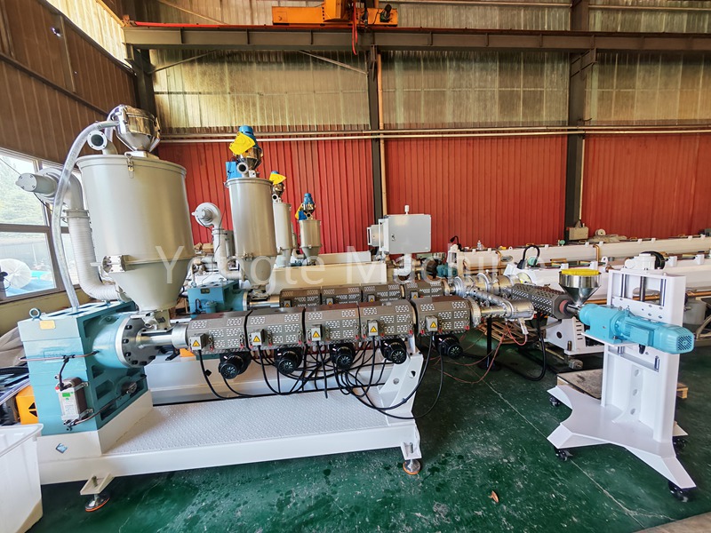 Mașina de țeavă PPR cu trei straturi include extruder principal, co-extruder, extruder de linie de marcare, cap de matriță și mucegai, rezervor de răcire în vid, rezervor de răcire cu pulverizare cu apă, mașină de tragere, mașină de tăiat automat și stivuitor de produse. Linia completă de producție este proiectată pentru viteză automată, de producție ridicată, producție de înaltă calitate și funcționare ușoară.