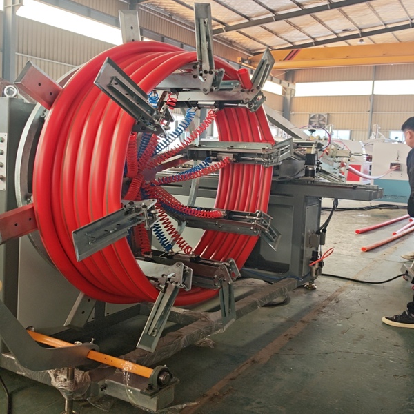 Yongte 63mm Double station HDPE Pipe Auto Winder este un echipament complet automatizat de înaltă precizie conceput pentru înfășurarea țevilor HDPE cu diametrul de 63 mm pe role.
