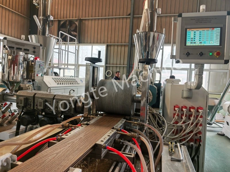 Ca piesa centrală a demonstrației, cel mai recentWPCpardosealalinie de producțieintegrează tehnologia de control inteligentă de ultimă oră și procese optimizate. Echipat cu un extruder cu dublu șurub cu cuplu mare, acesta abordează eficient provocările precum plastificarea neuniformă și evacuarea slabă cauzată de ratele mari de umplere cu pulbere de lemn, asigurând o calitate constantă a produsului.