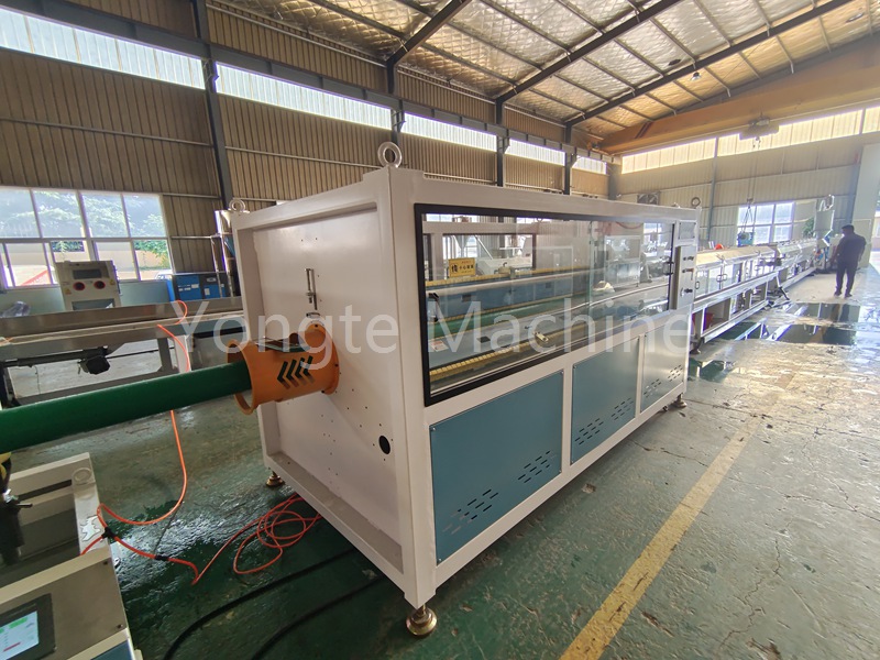 4.Câss și modelare: După extrudare, tubul este trimis la rezervorul de răcire pentru plasticizare și răcire, în timp ce forma tubului este modelată folosind o matriță de model în timpul procesului de răcire pentru a atinge cerințele standard și de precizie necesare.