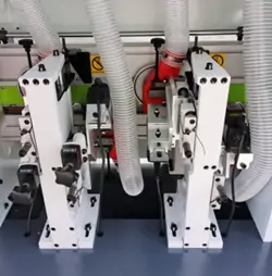 Lipirea: Fixarea prin presare pe 6 roți este mai precisă decât cea pe 4 roți, face linia de lipici ușoară, furnir de lemn cu grosimi diferite, toate pot fi mutate cu ușurință. |