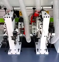 Pre-miling: Suprafața marginii panoului fără imperfecțiuni înainte de operația de lipire. Utilizează 2 scule cu rotație opusă și intervenție temporizată care, prin operația de îndepărtare, corectează orice imperfecțiuni ale panoului cauzate de procesul de tăiere a ferăstrăului și depozitarea panoului. |