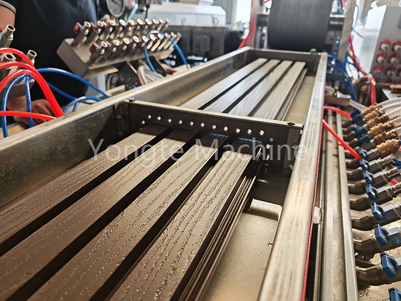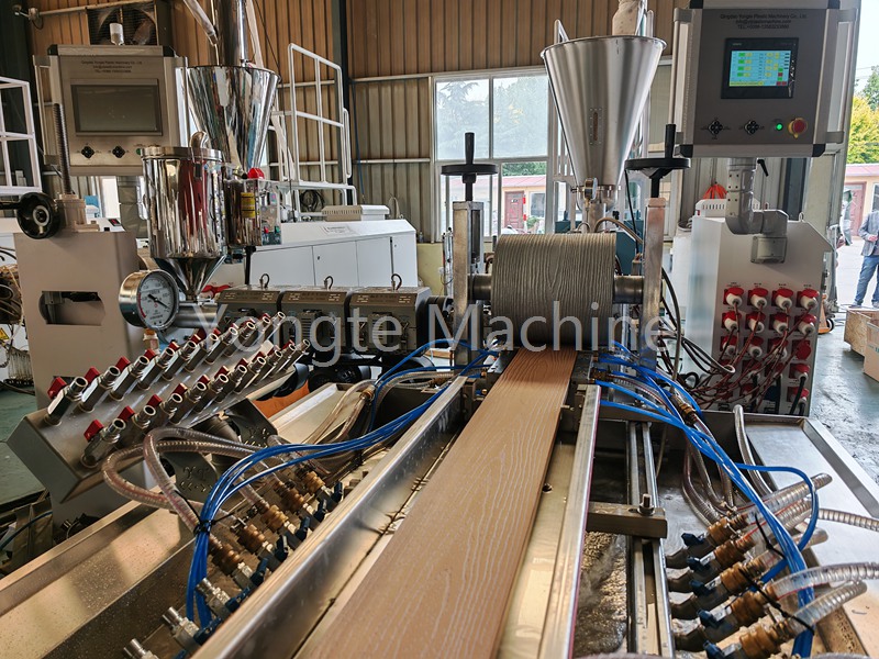 Peletele WPC sunt introduse în linia de extrudare a profilului WPC Yongte. Echipamentul adoptă un extruder conic cu două șuruburi efectiv, special conceput, cap de matriță de extrudare WPC și mucegai special construit pentru materiale din plastic din lemn, dispozitiv de echipare 3D online pentru model de lemn, sistem de calibrare și răcire de mare viteză, dispozitiv de tracțiune puternic și sistem de tăiere automată. Procesul de producție este eficient și stabil și fiecare legătură este controlată cu precizie, ceea ce îmbunătățește considerabil capacitatea de producție; Produsele WPC produse de această mașină au dimensiuni stabile, suprafețe de tăiere îngrijite fără burrs, boabe realiste și vii din lemn și performanțe excelente ale produsului.