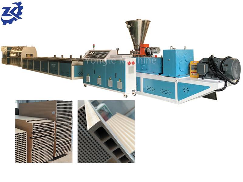 2. Ușa și profilul WWPC Extruziune și modelare: Materialul compozit din lemn mixt din lemn este încălzit și plasticizat de un extruder, apoi extrudat în forma și dimensiunea dorite.