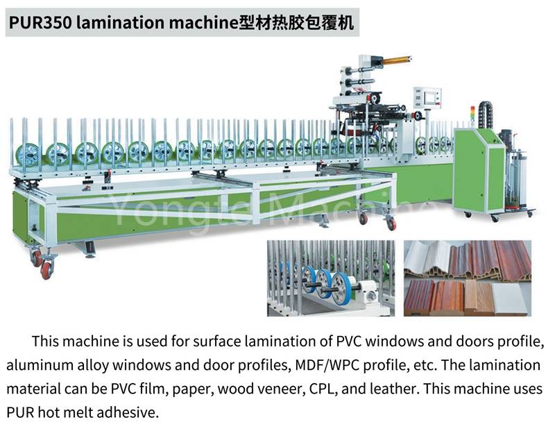 Mașină de laminare pur pentru a acoperi frumosul film de decorare pe ușa WPC și produsul de profil.